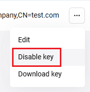 next to your certificate and select Disable key (see the figure below).