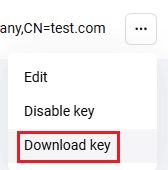 next to your certificate and select Download key (see the figure below).