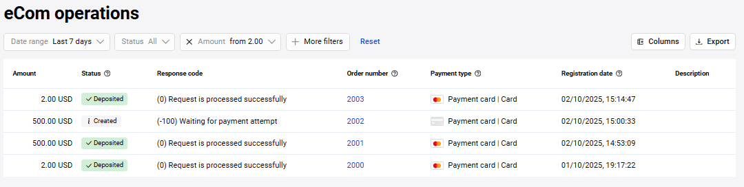 In case of a two-phase payment, the funds are first reserved on the client's account (order status is Approved) and only then are credited to the merchant's account (order status is Deposited). It is possible to configure that the final transfer takes place automatically after a certain time set in the system, e.g. after 24 hours. But this operation can be performed manually from the merchant's Personal Area.