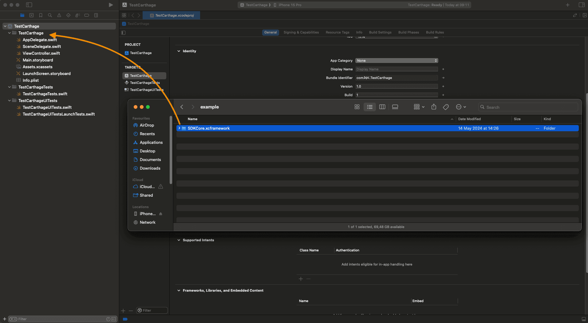 SDKCore.xcframeworkframework the Embed column has Embed & Sign selected.-